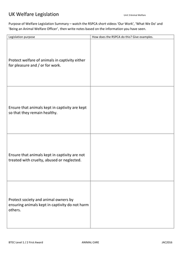 Uk Animal Welfare Legisation Teaching Resources